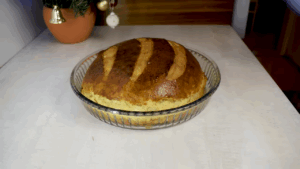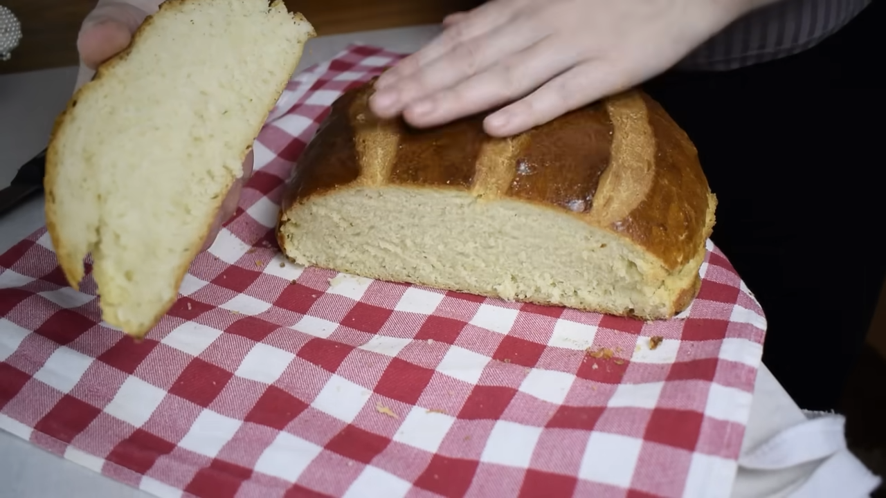 - Peći 30 do 35 minuta dok korica ne postane zlatno smeđa. Po dnu vekne treba da se čuje šuplji zvuk. Izvaditi i ohladiti na rešetki 20 minuta pre sečenja.