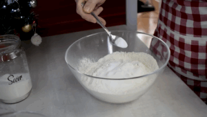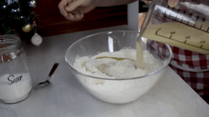 - Dodaj ulje i so pa umešaj oko polovinu brašna kašikom. Zatim postepeno dodaj ostatak brašna dok ne dobiješ mekano testo.