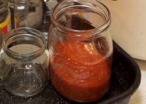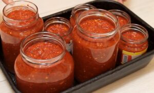 - Posle 1 h i 40 min završnog krčkanja, stavite čiste, suve tegle i poklopce u hladnu rernu, uključite je na 120°C i držite 10 min.