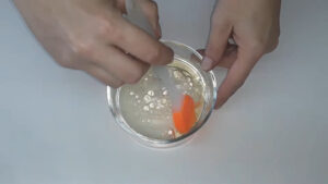- U manjoj činiji spojite 150 ml ulja i 150 ml vruće vode i promešajte.